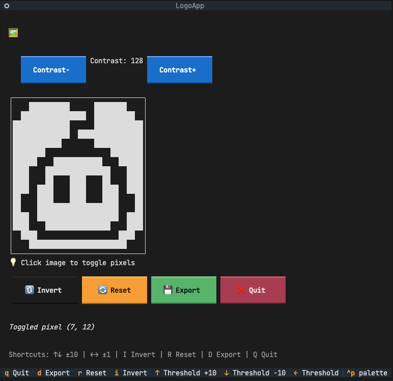 pip install Pillow numpy textual - Prepare a logo image that is close to square and obtain its file path