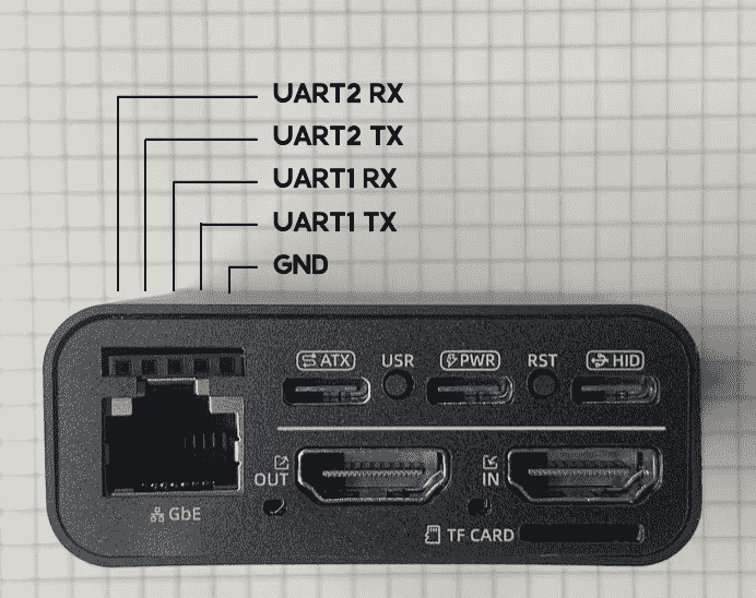 NanoKVM Pro provides two sets of available serial ports: UART1/UART2. (Note: The ATX version, limited by the standard bracket size, does not have these ports externally exposed; only the internal solder pads are retained.)