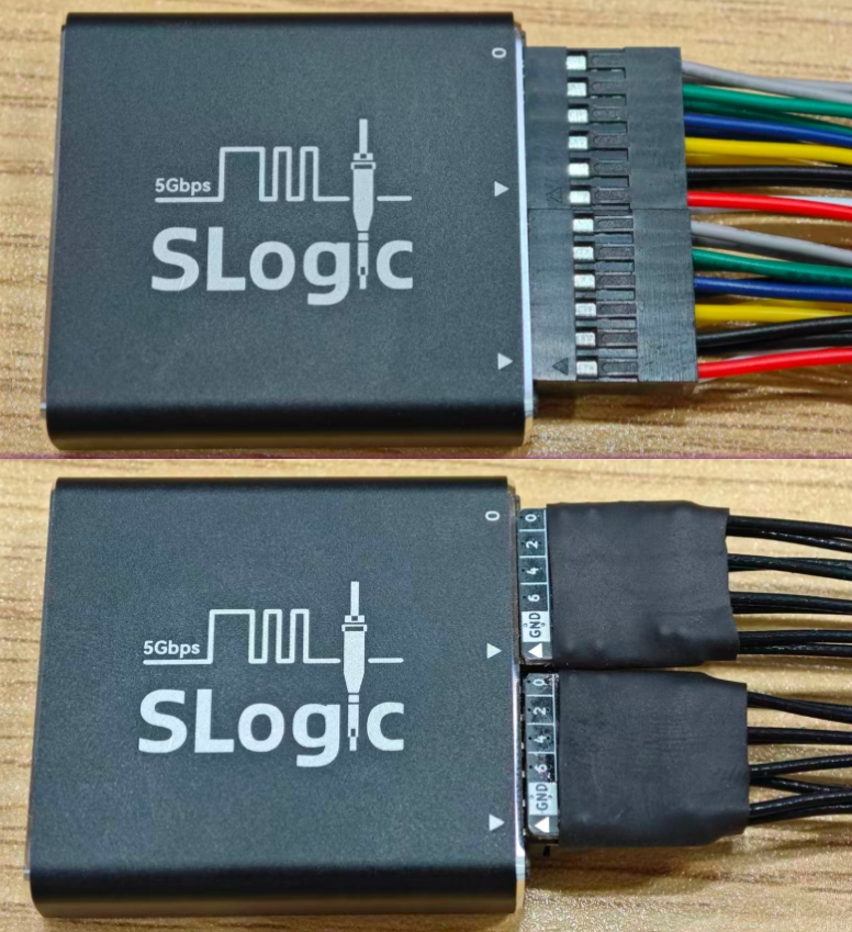 将目标设备的待测信号点通过杜邦线/同轴线连接至 SLogic 任意空闲CH数字端口,并确保待测设备的GND与SLogic的GND相连接。