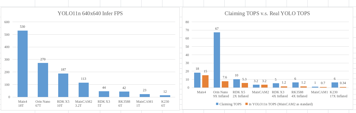 NPU | 12.8Tops@INT4 / 3.2TOPS@INT8, 支持卷积和Transformer模型,如 YOLO/LLM/VLM 等, YOLO11n 640x640 帧率高达 113FPS |